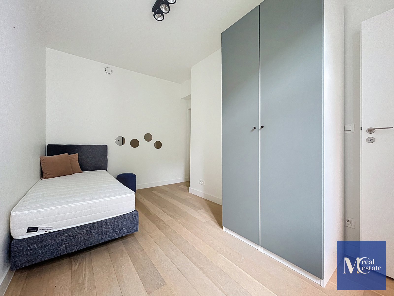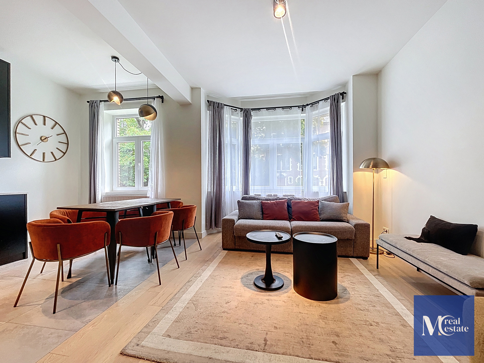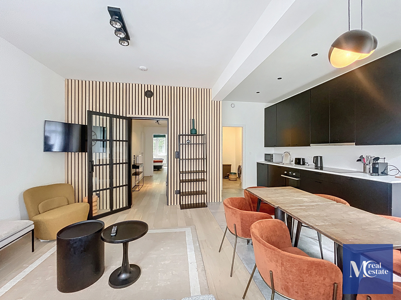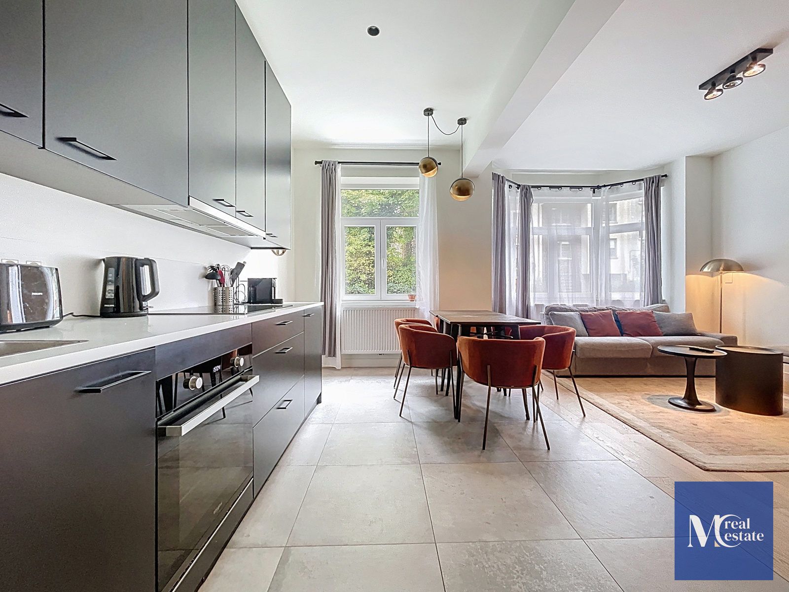 Uccle/Parc de Wolvendael, pleasant FURNISHED ground floor apartment of +/-86m2 offering an entrance hall with separate toilet, storage room, living room with fully equipped American kitchen, adjoining laundry room, 2 bedrooms (15m2 - 11m2), the largest bedroom gives access to the 18m2 terrace facing South-West, shower room. Bicycle storage. Cellar. Available from 20/11/2025. PEB D- 191. Charges: €220 (heating, water heating (not water), maintenance of common areas, administrative and technical management and fire insurance with waiver of recourse). Security door, double glazing. Information and visit 0478 35 73 88
