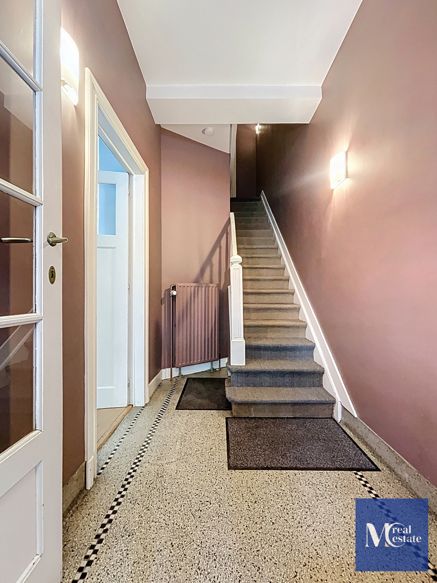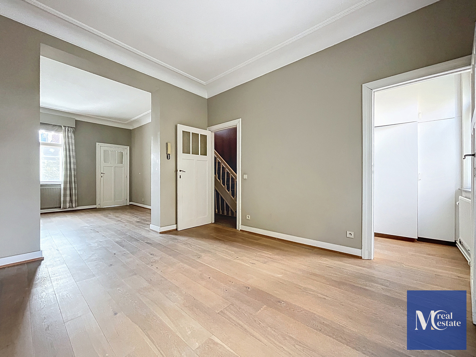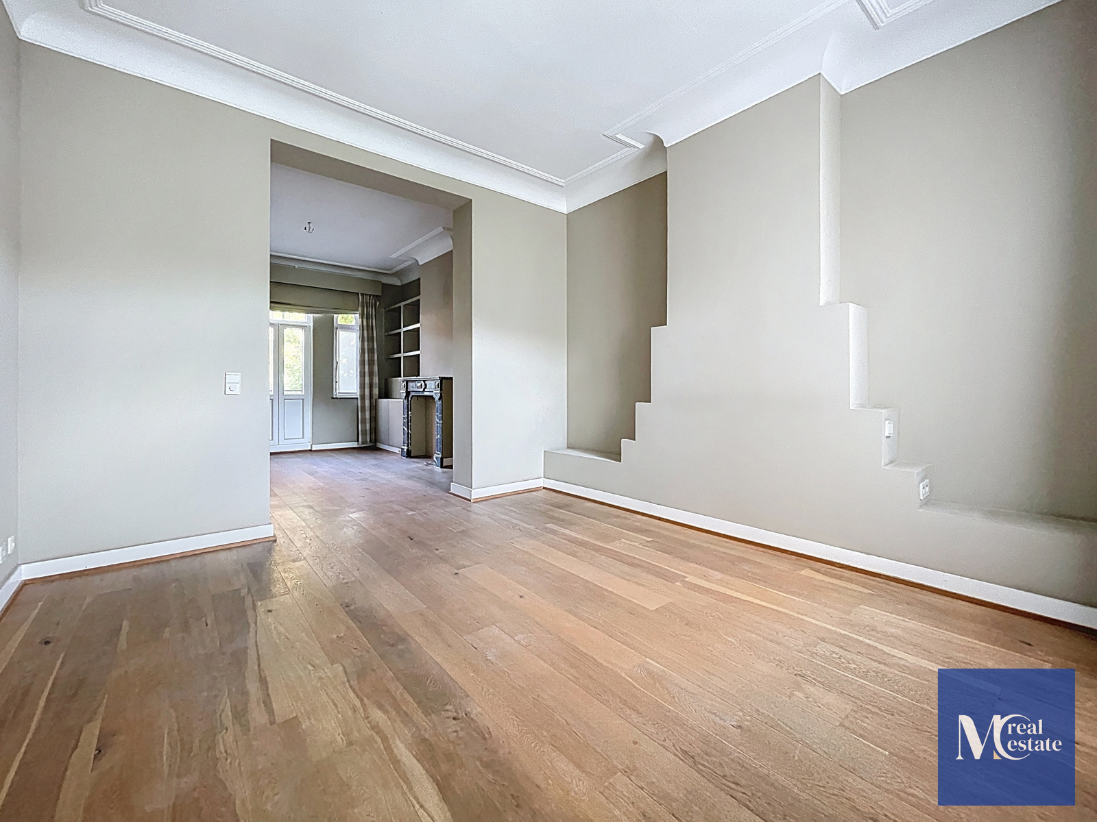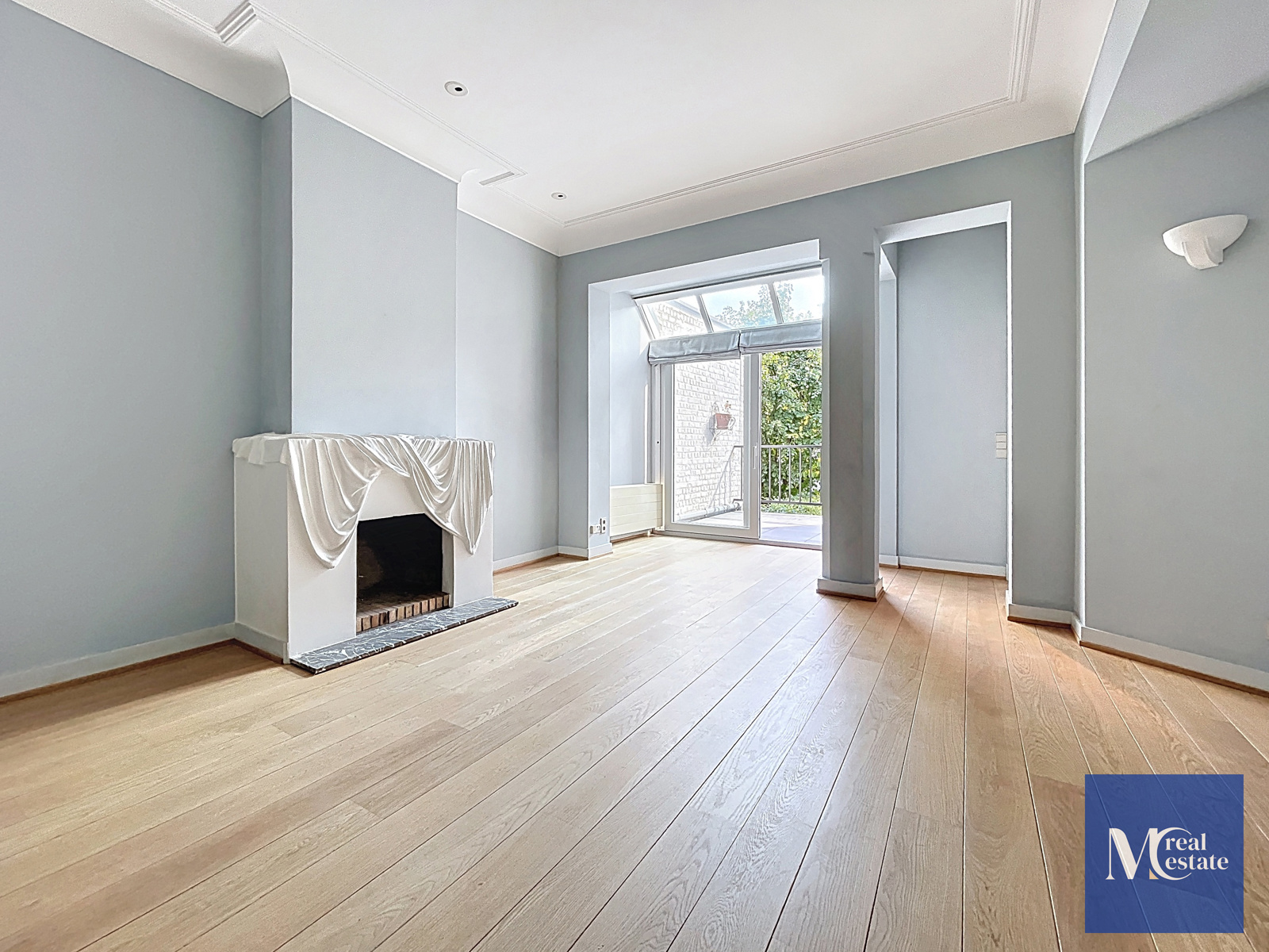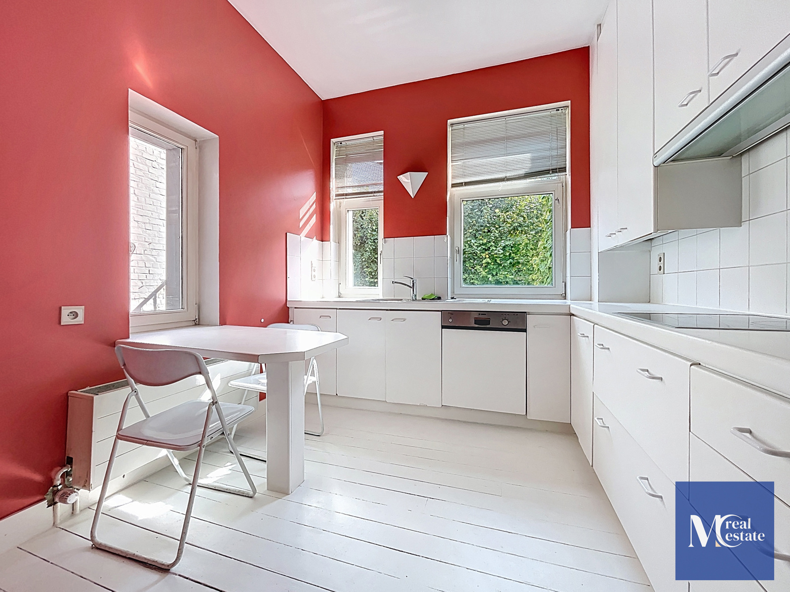 Between Georges Henri and Diamant, very pretty character house of +/-310m2. It offers on the main floor an entrance hall, living room + dining room with pretty decorative fireplace, access to a 6m2 terrace, super-equipped kitchen. On the 1st floor; night hall with separate toilet, a large bedroom of 32m2 (2 adjoining rooms) + 5m2 dressing room, bathroom with toilet + access to a small terrace. On the 2nd floor: night hall, 2 bedrooms (16m2 - 16m2), office and/or dressing room, bathroom with toilet + access to a small terrace. On the 3rd floor; a large storage attic. In the basement: cellars, laundry room, one-car garage, 50m2 garden facing South-East + 10m2 terrace. New insulated roof, insulated rear facade, some frames are recent double glazing, recent gas boiler. PEB D. Free. Information and visits: 0478 35 73 88