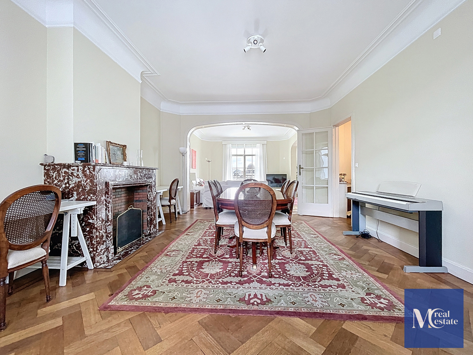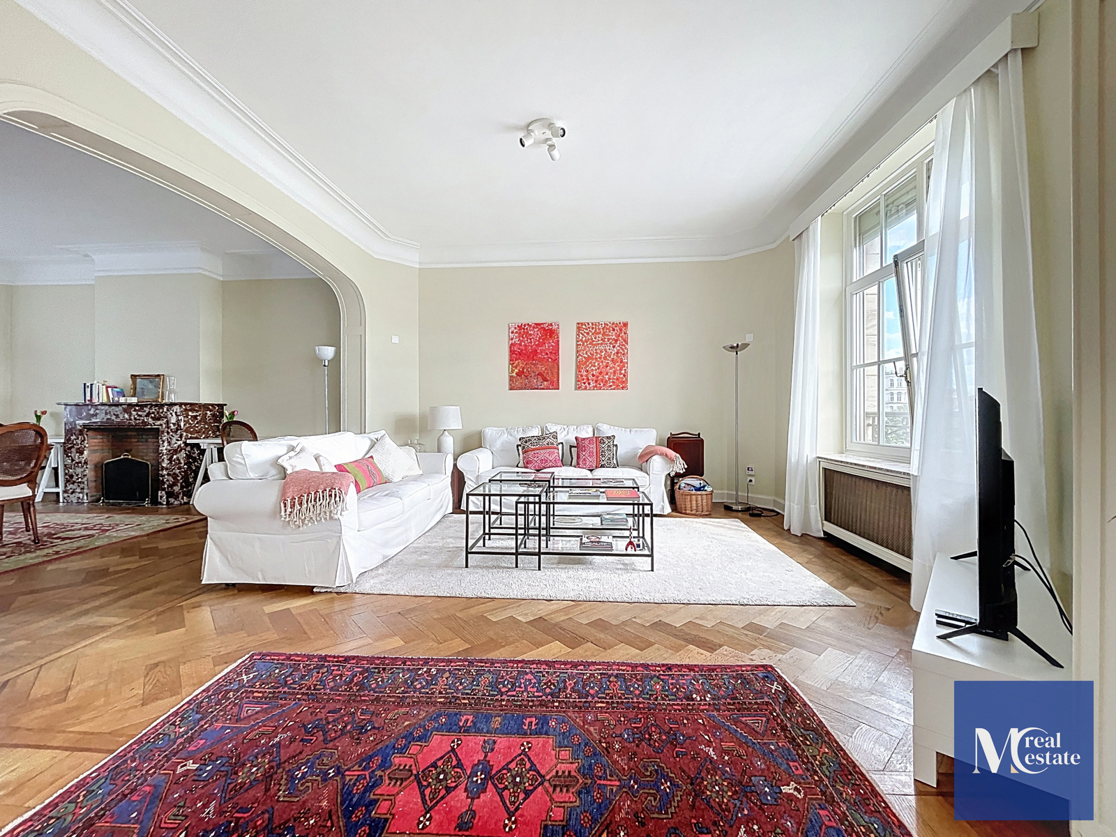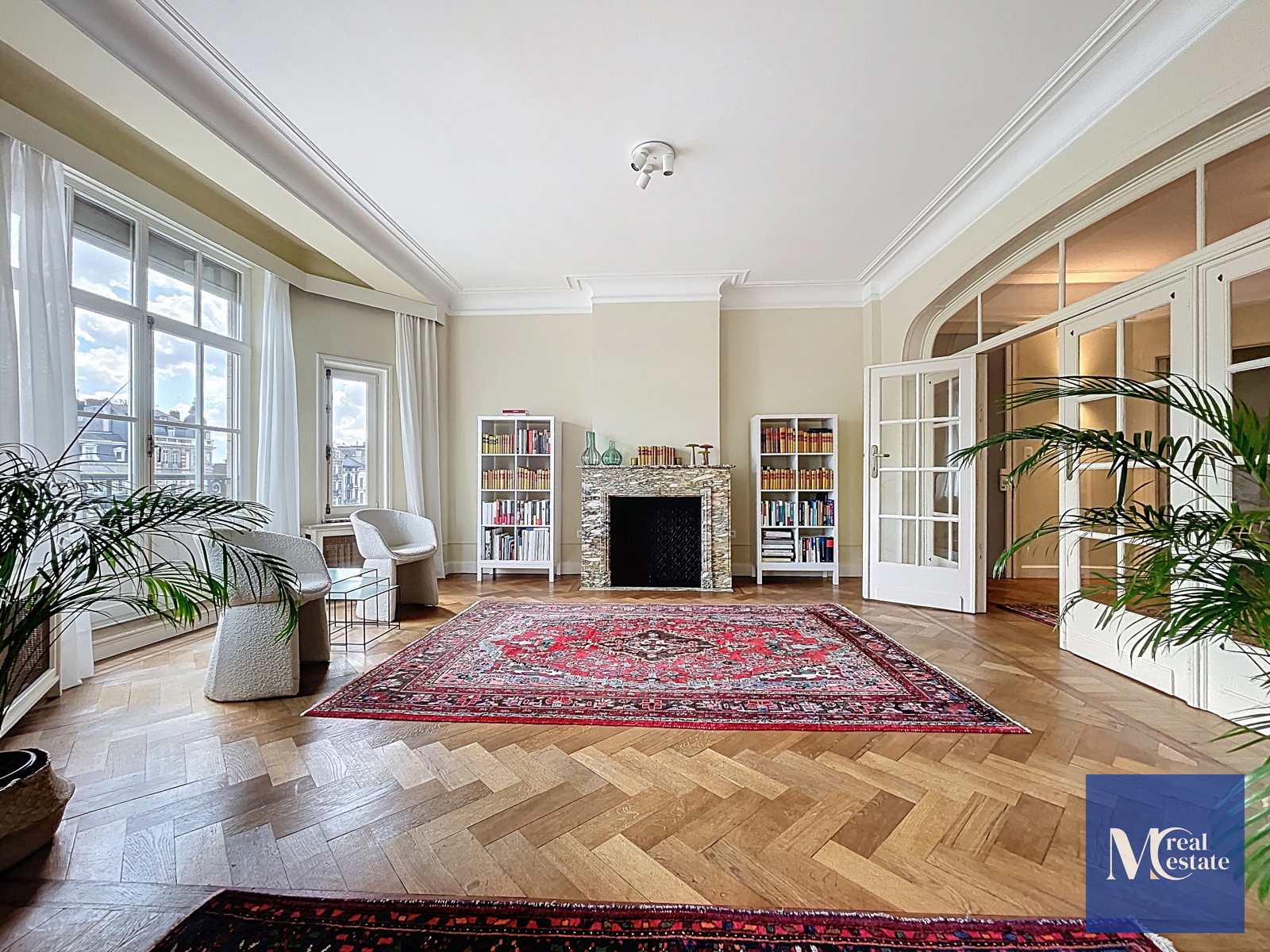 Cinquantenaire/Metro Merode, in a luxury and character building dating from 1928, superb apartment of +/-219m² located on the 3rd floor with elevator. It consists of a large entrance hall of 14.50m², beautiful reception rooms of 74m² with beautiful parquet flooring, recent super-equipped kitchen (double sink, dishwasher, induction hob, extractor, oven, fridge, freezer), laundry room with washing machine, storage room, night hall with separate toilet, 3 bedrooms (23m² - 22m² - 20m²), 2 shower rooms including one with toilet. 2 cellars (8m² - 6m²), a maid's room of 8m² on the top floor. Currently rented. Double glazing throughout, security door, parquet flooring throughout, quality finishes! Possibility to purchase a parking space for 25.000€ in the Cinquantenaire Gallery, level -2 (entrance via Rue des Ménapiens). Individual gas heating. CPEB D+ 153 KwH/m²/year. Information 0478 35 73 88