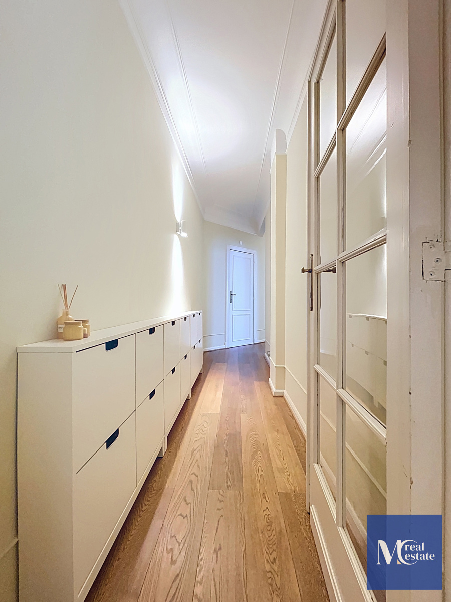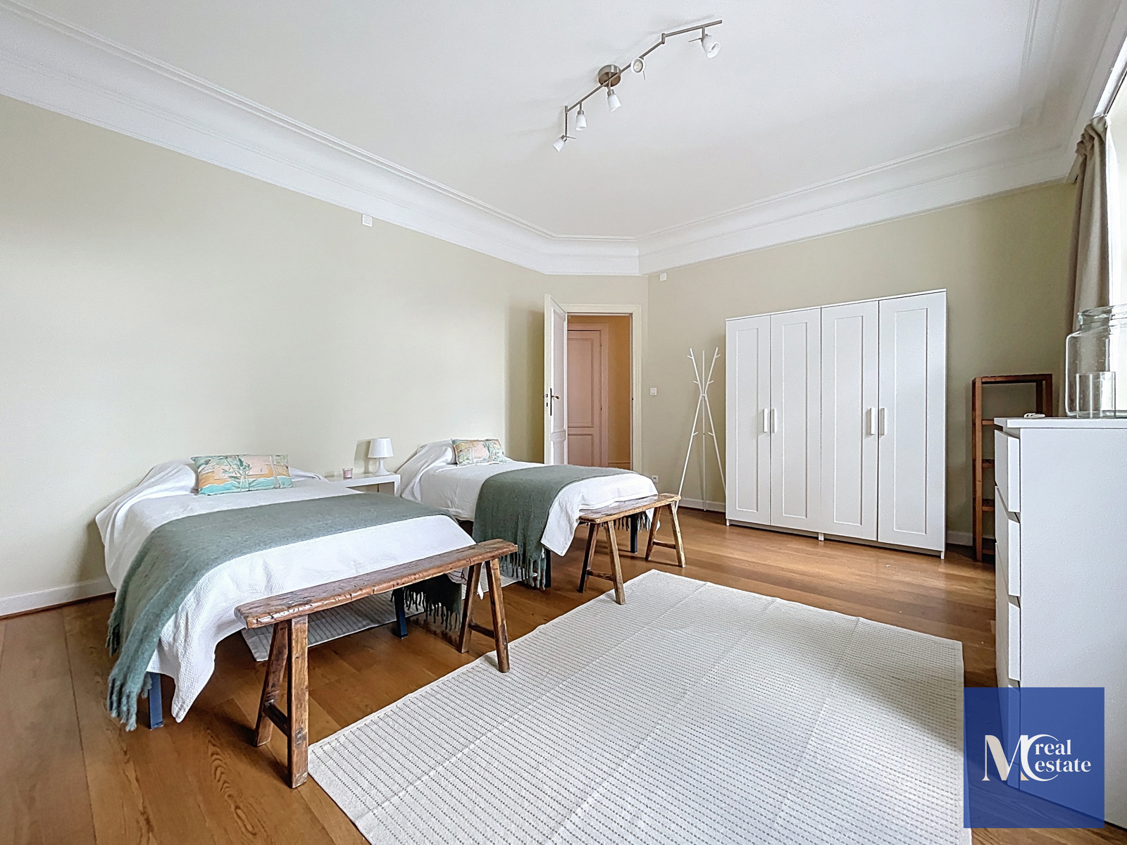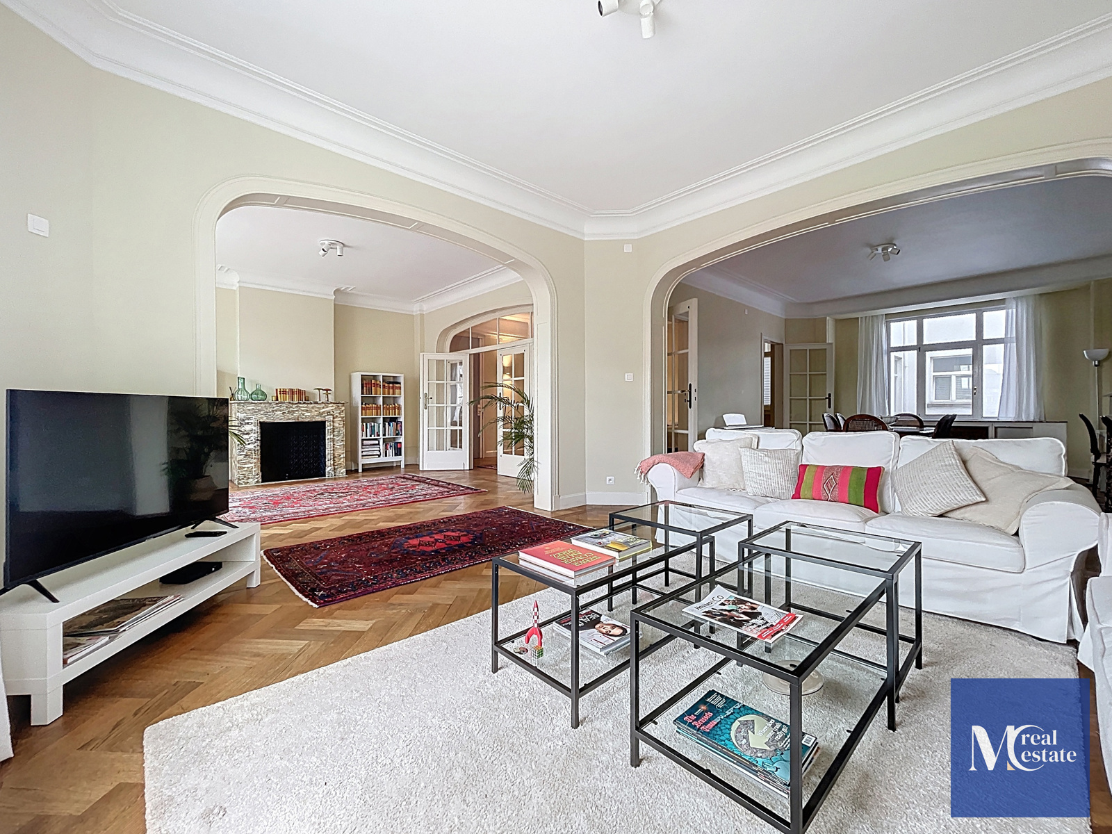 Cinquantenaire/Metro Merode, in a luxury and character building dating from 1928, superb apartment of +/-219m² located on the 3rd floor with elevator. It consists of a large entrance hall of 14.50m², beautiful reception rooms of 74m² with beautiful parquet flooring, recent super-equipped kitchen (double sink, dishwasher, induction hob, extractor, oven, fridge, freezer), laundry room with washing machine, storage room, night hall with separate toilet, 3 bedrooms (23m² - 22m² - 20m²), 2 shower rooms including one with toilet. 2 cellars (8m² - 6m²), a maid's room of 8m² on the top floor. Currently rented. Double glazing throughout, security door, parquet flooring throughout, quality finishes! Possibility to purchase a parking space for 25.000€ in the Cinquantenaire Gallery, level -2 (entrance via Rue des Ménapiens). Individual gas heating. CPEB D+ 153 KwH/m²/year. Information 0478 35 73 88