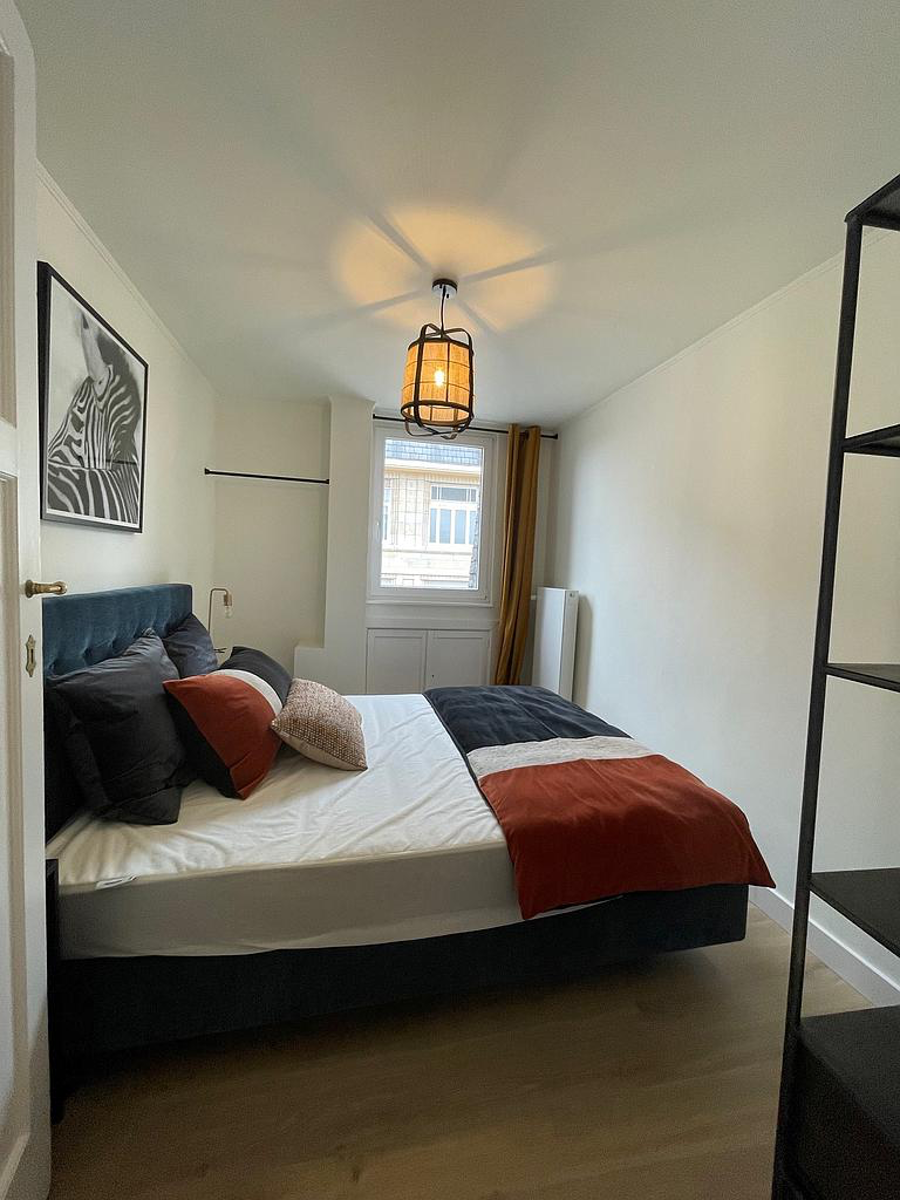 Saint-Gilles limite Ixelles, à proximité de la Place Brugmann, dans un immeuble de style "Art Déco", bel appartement MEUBLE lumineux de +/-50m2 situé au 5ème et dernier étage avec ascenseur. Il se compose d'un hall d'entrée, séjour/salle à manger de +/-34m2, cuisine américaine équipée, 1 chambre de 9m2, salle de douche avec toilette, une mezzanine pouvant servir de chambre d'appoint ou rangement. Une cave disponible. CPEB G. Charges forfaitaires : 240€/mois : comprenant (chauffage, l'eau chaude et l'eau froide, l'assurance incendie avec abandon de recours, l'entretien des communs et la gérance administrative et technique). Libre le 10/02/2026. Info et visite 0478 35 73 88