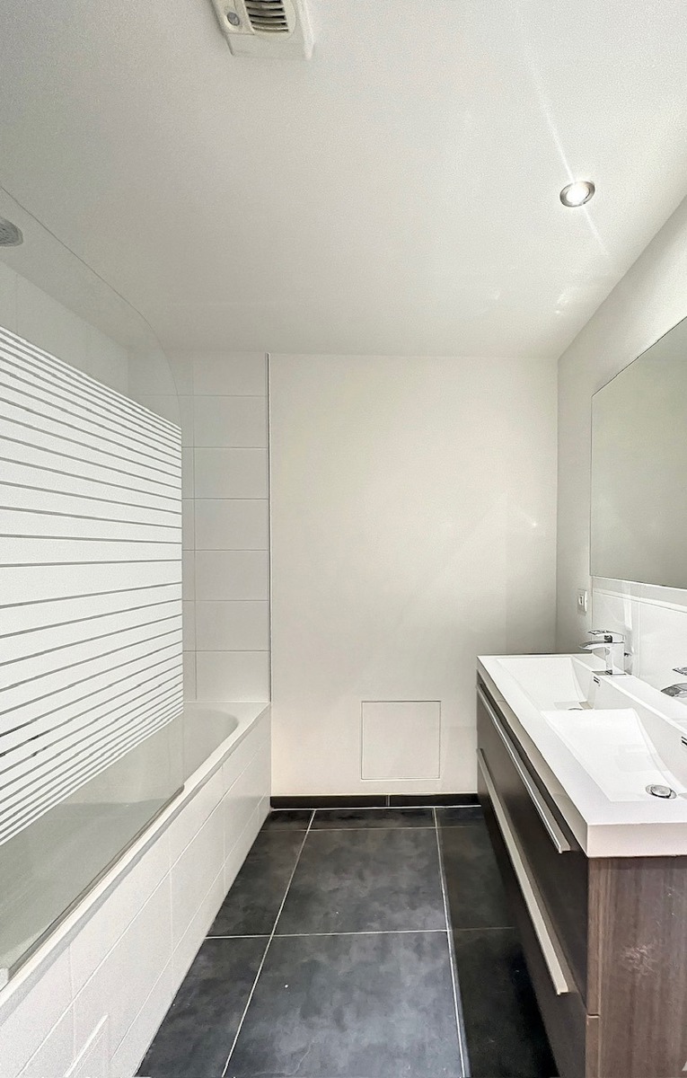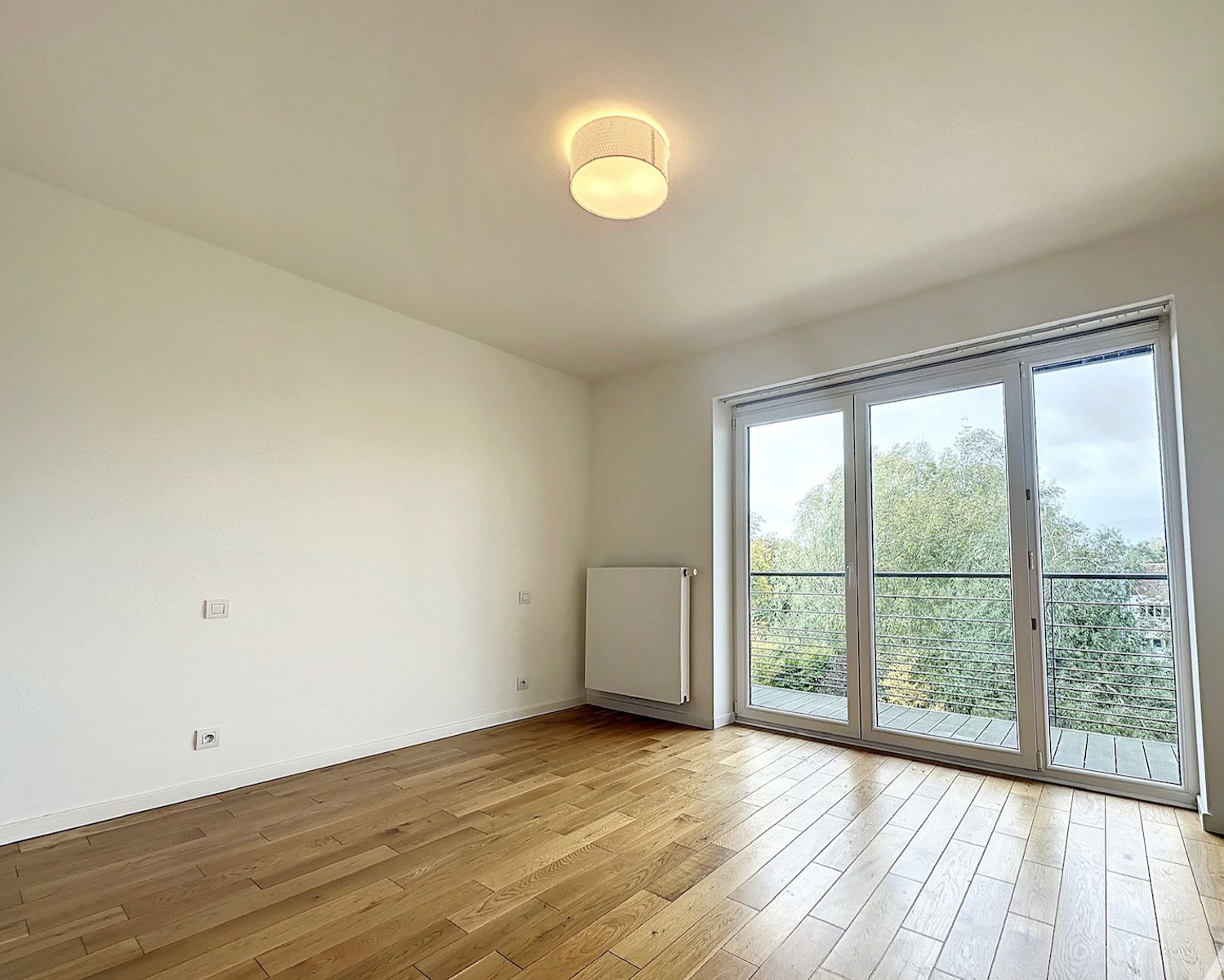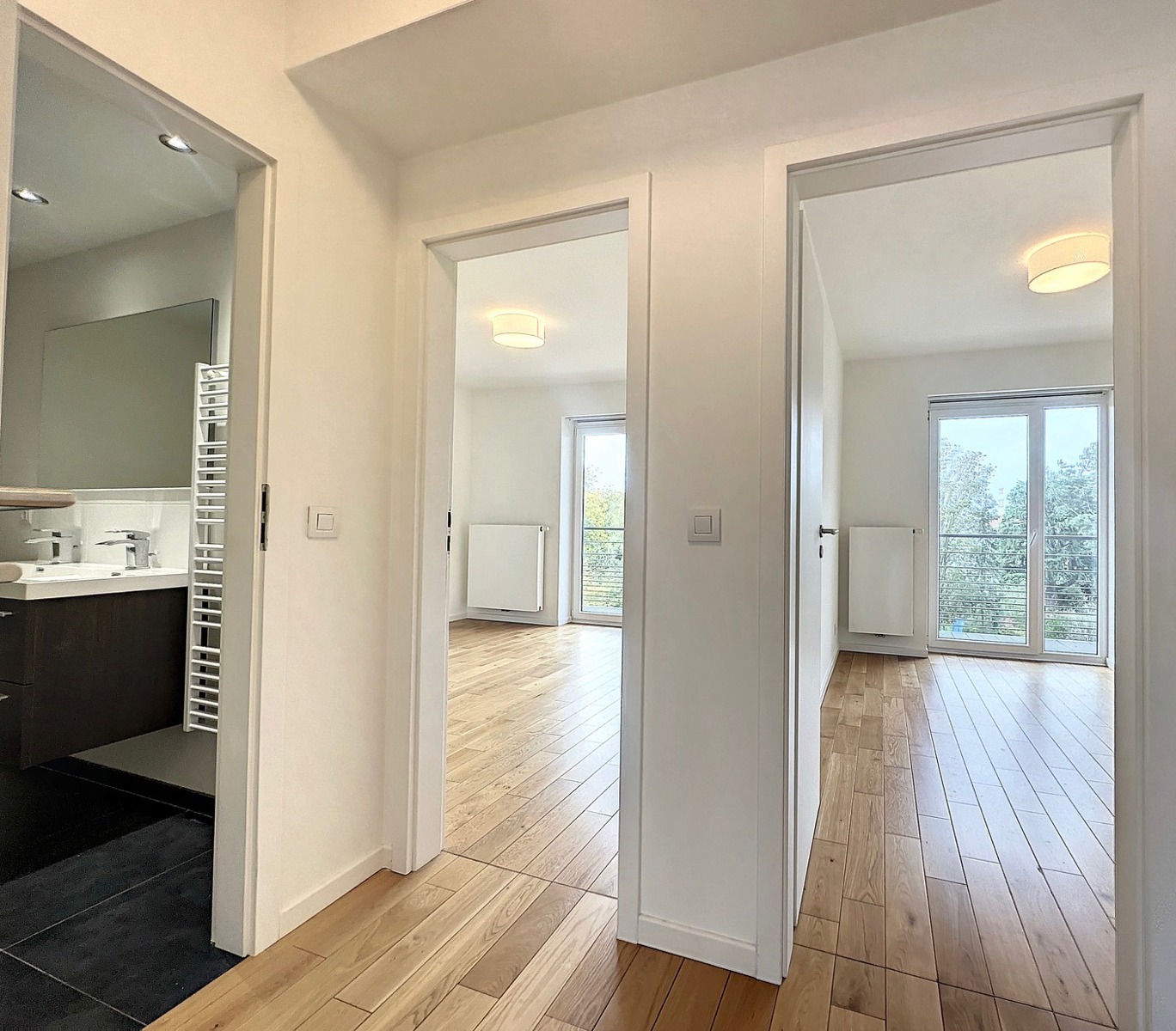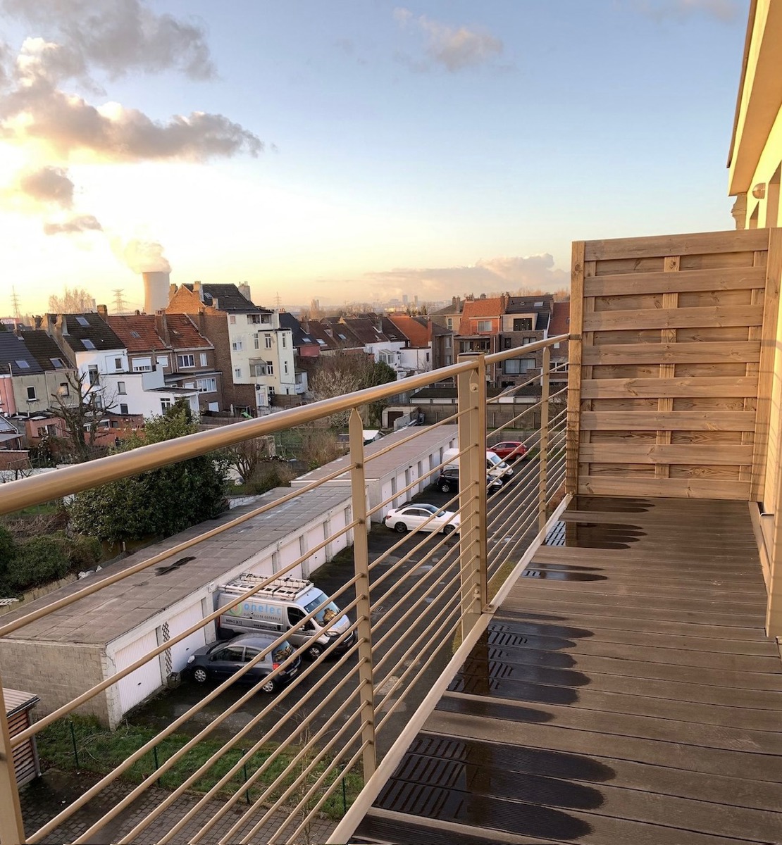 Drogenbos limite Uccle, dans une construction moderne de 2016, joli appartement de +/- 85m2. Il se compose au 1er étage d'un hall d'entrée, WC séparé, séjour de 35m2 avec cuisine américaine super-équipée, terrasse arrière orientée Ouest de 9m2, 2 chambres ( 16m2 - 12m2), salle de bains. Double vitrage. Libre le 16/02/2026. CPEB: 189 KwH/m2/an. Charges: 200€ Communs + Assurance AR + chauffage. Info et visite: 0478 35 73 88