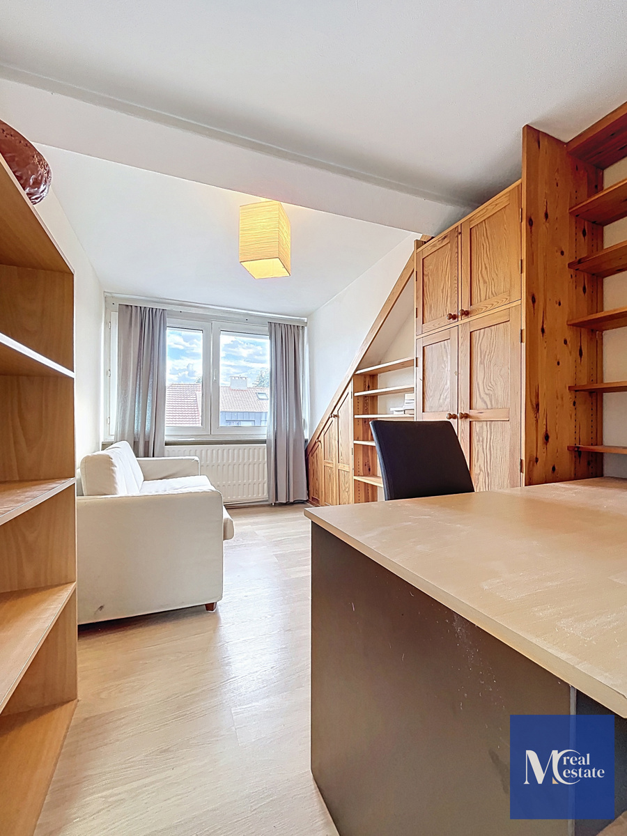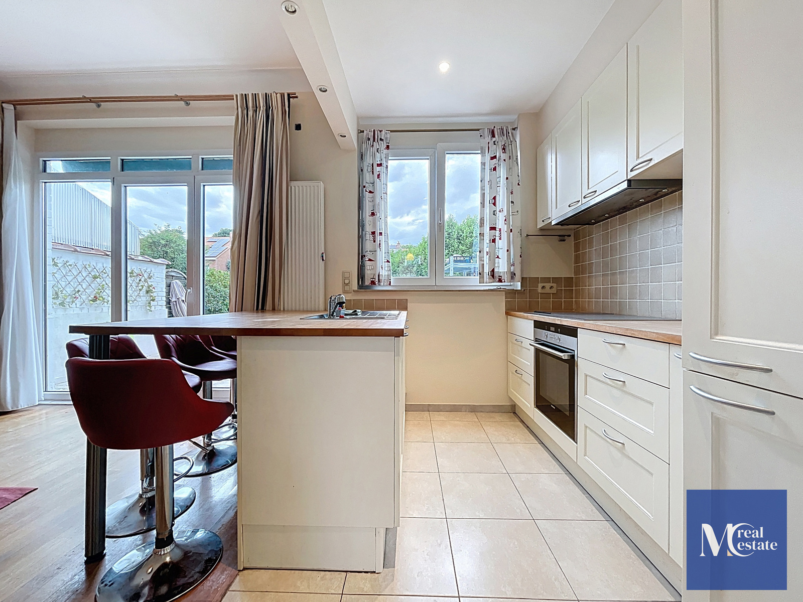 Quartier Sainte-Alix, agréable et lumineuse maison de type Bel-étage MEUBLEE de +/-158m2. Elle se compose d’un hall d’entrée avec WC séparé, séjour avec feu-ouvert à cassette et salle à manger, cuisine super-équipée (four, lave-vaisselle, frigo, congélateur, double évier, taque induction, hotte), accès terrasse et au jardin orientée Nord-Ouest. Au 1er étage : hall de nuit, 2 chambres (16m2 et 13m2), dressing de 6m2, salle de bains avec toilette rénovée (2025). Au 2ème étage : espace polyvalent de 9m2, 2 chambres (12m2-10m2) avec volets, salle de douche. Sous-sol : garage avec porte automatique, caves, chaufferie, accès jardin. Libre. CPEB : E-. Toiture récente et isolée, double vitrage, citerne d’eau de pluie, chauffage au gaz. Info et visite 0478 35 73 88