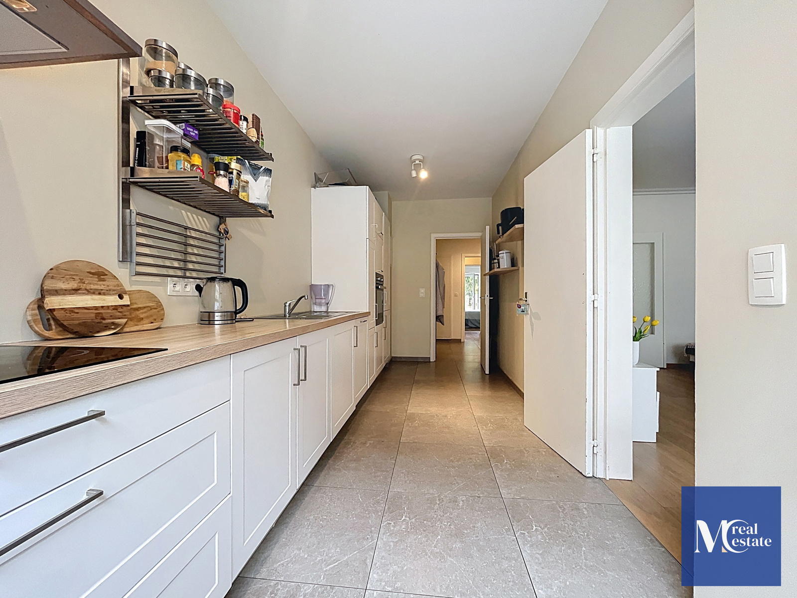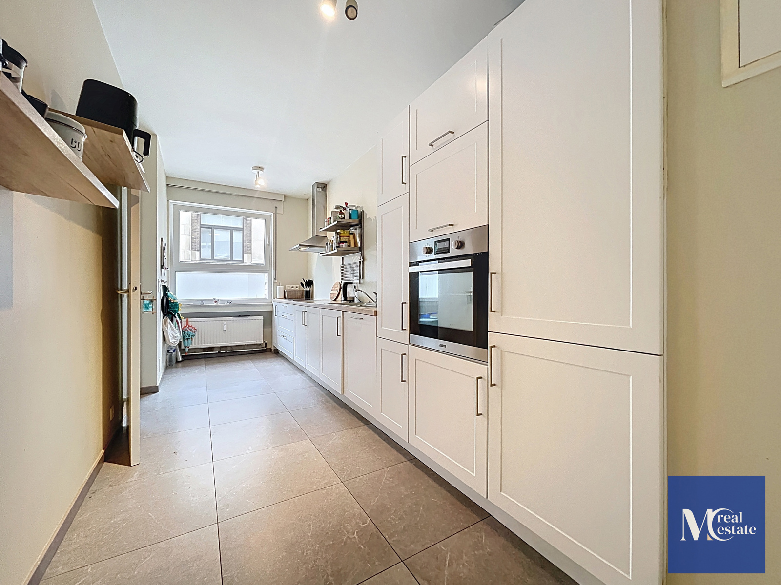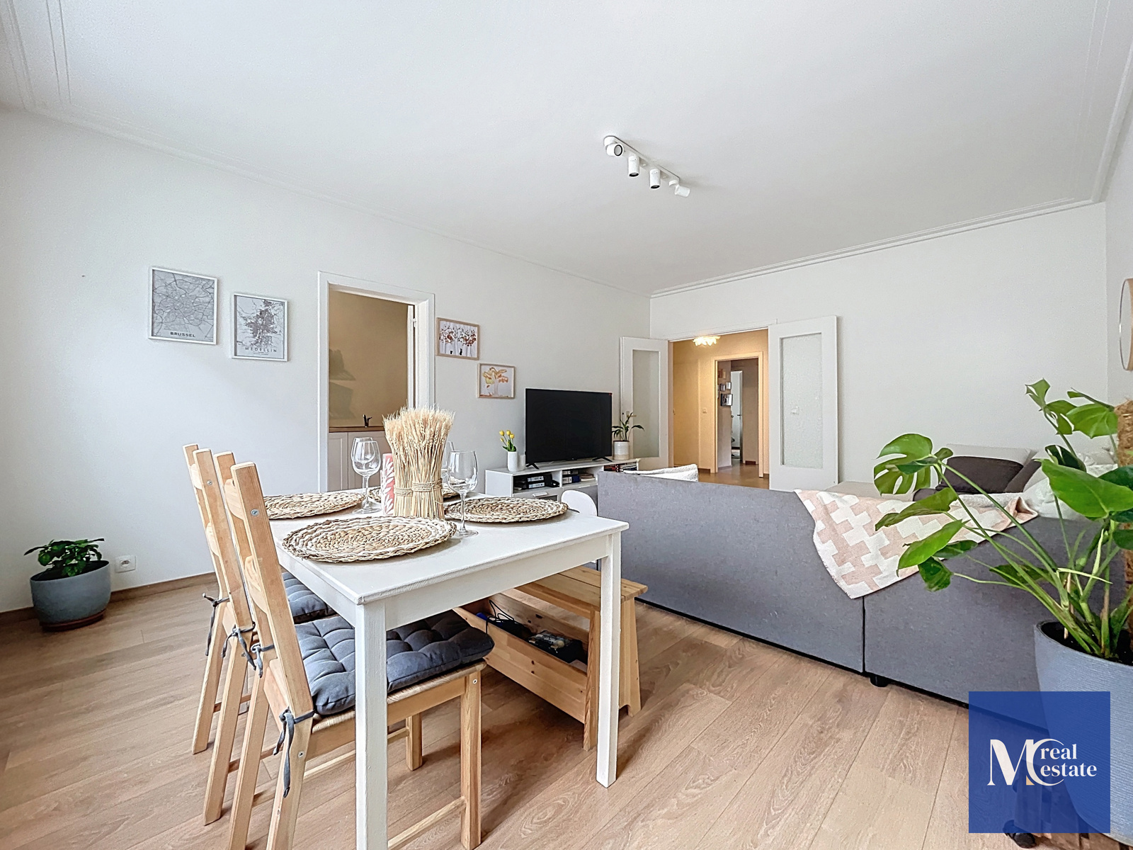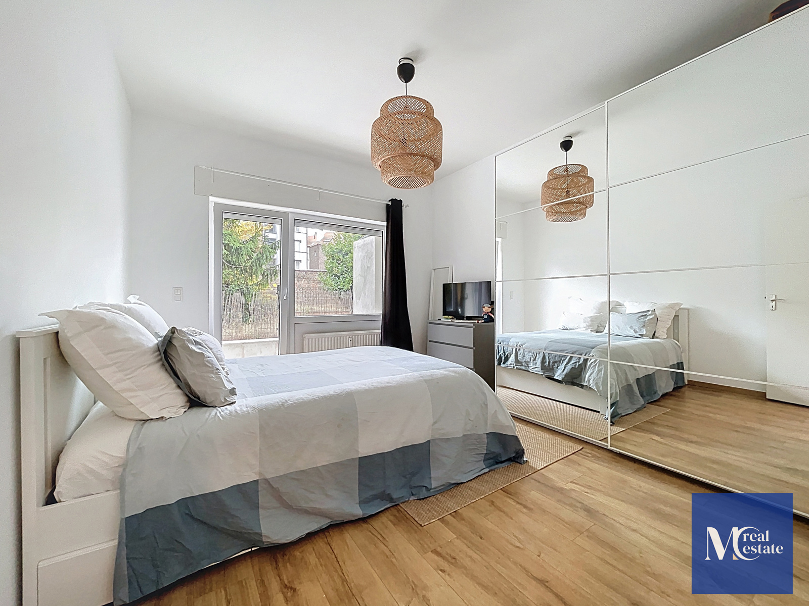 Entre le parc Josaphat et la place des Bienfaiteurs, bel appartement rez-de-chaussée rénové de +/- 89m2. Il se compose d’un vaste hall d’entrée avec placard vestiaire, séjour et salle à manger de 24m2, grande cuisine super-équipée (four, micro-ondes, taque induction, hotte, lave-vaisselle, évier, nombreux rangements) , hall avec WC séparé, hall de nuit avec placards, une salle de bains avec emplacement machine à laver, 2 chambres ( 13,50m2 - 10m2) dont une donnant accès à la terrasse arrière de 13m2 orientée Sud-Ouest. Une cave de 6m2. Ascenseur aux normes, nouvelle chaudière au gaz (2024), électricité aux normes, façade arrière isolée, volets partout. Actuellement loué mais libre au 01/02/2026. CPEB E-. Info et visite 0478 35 73 88