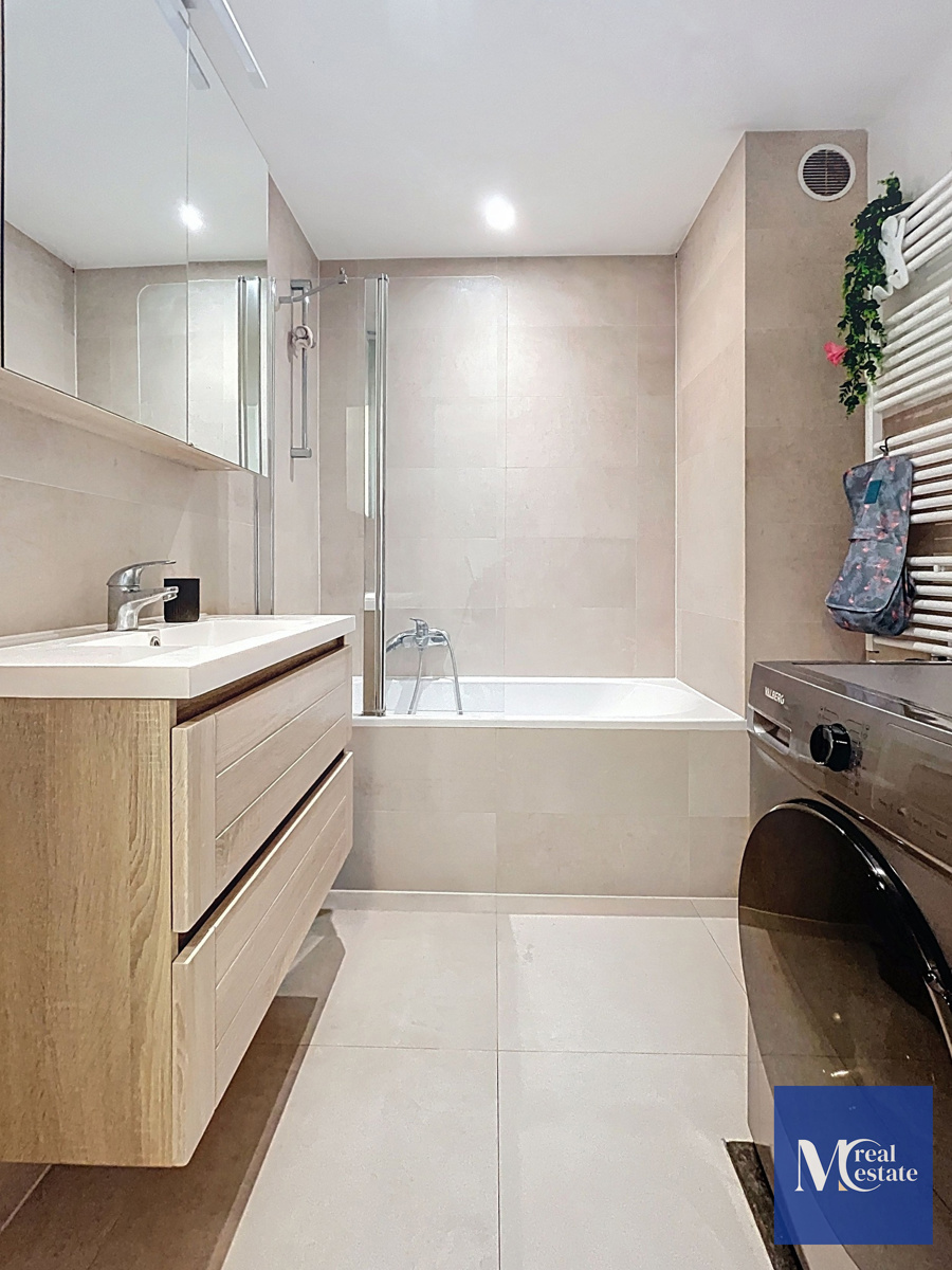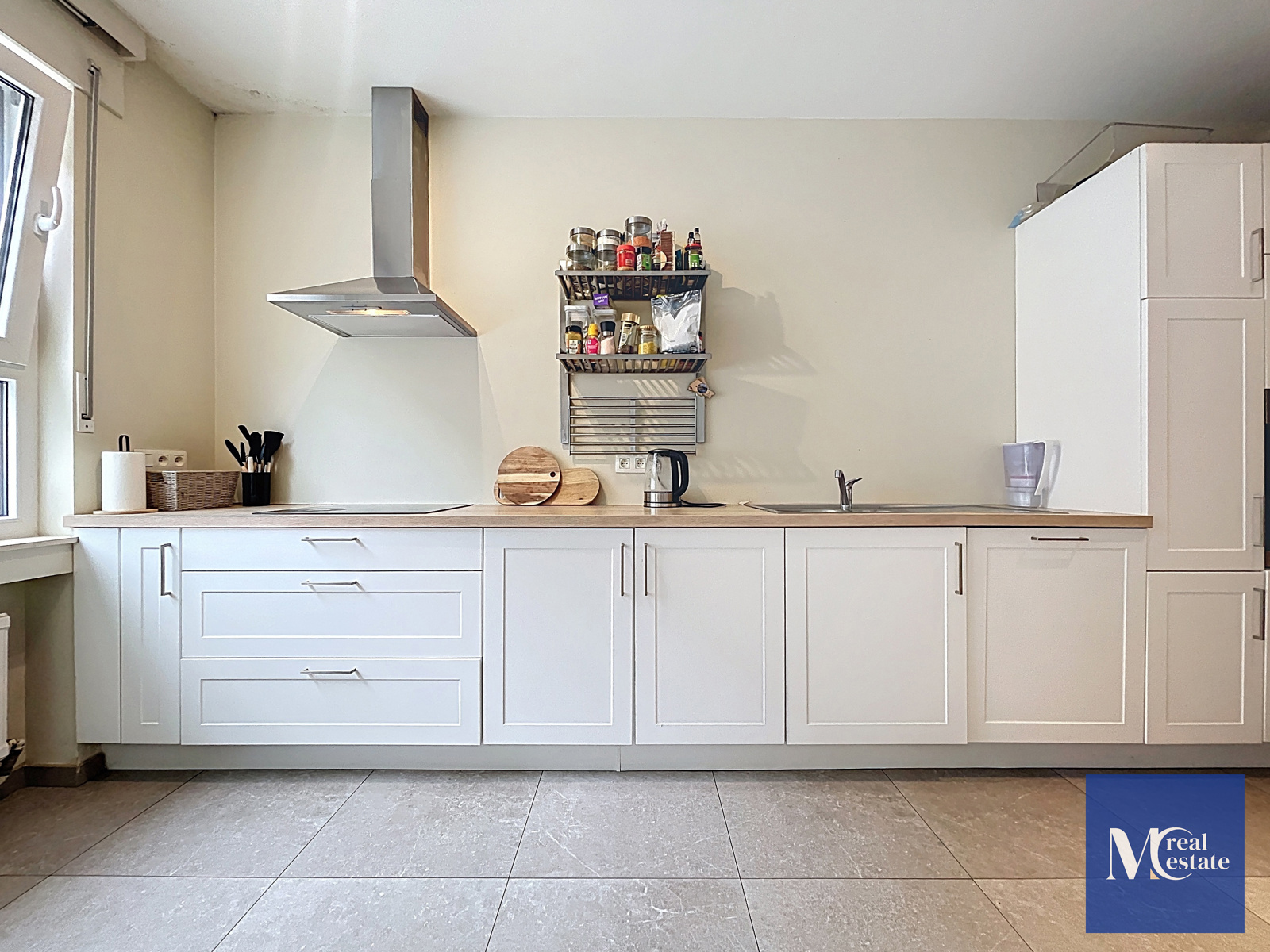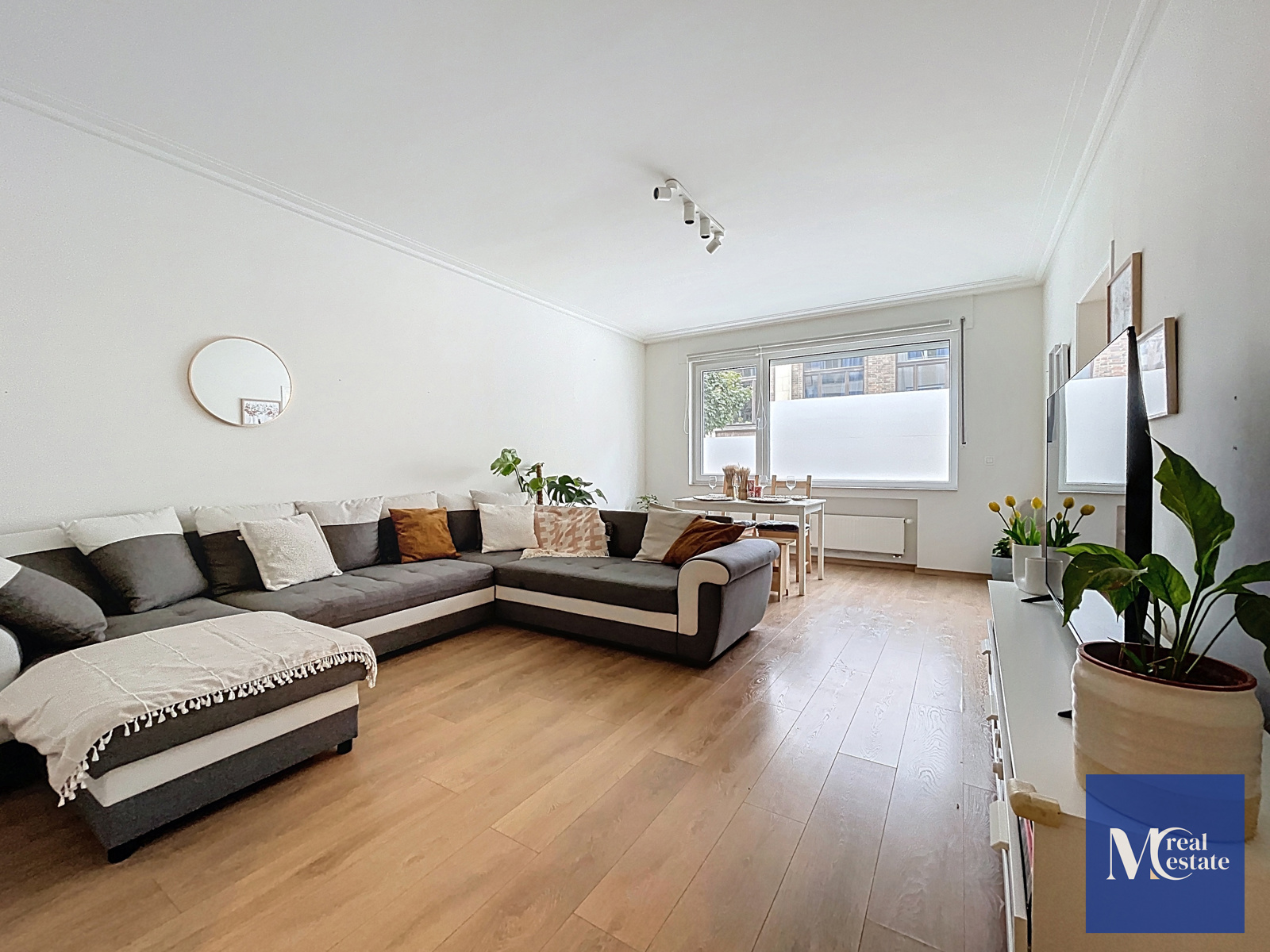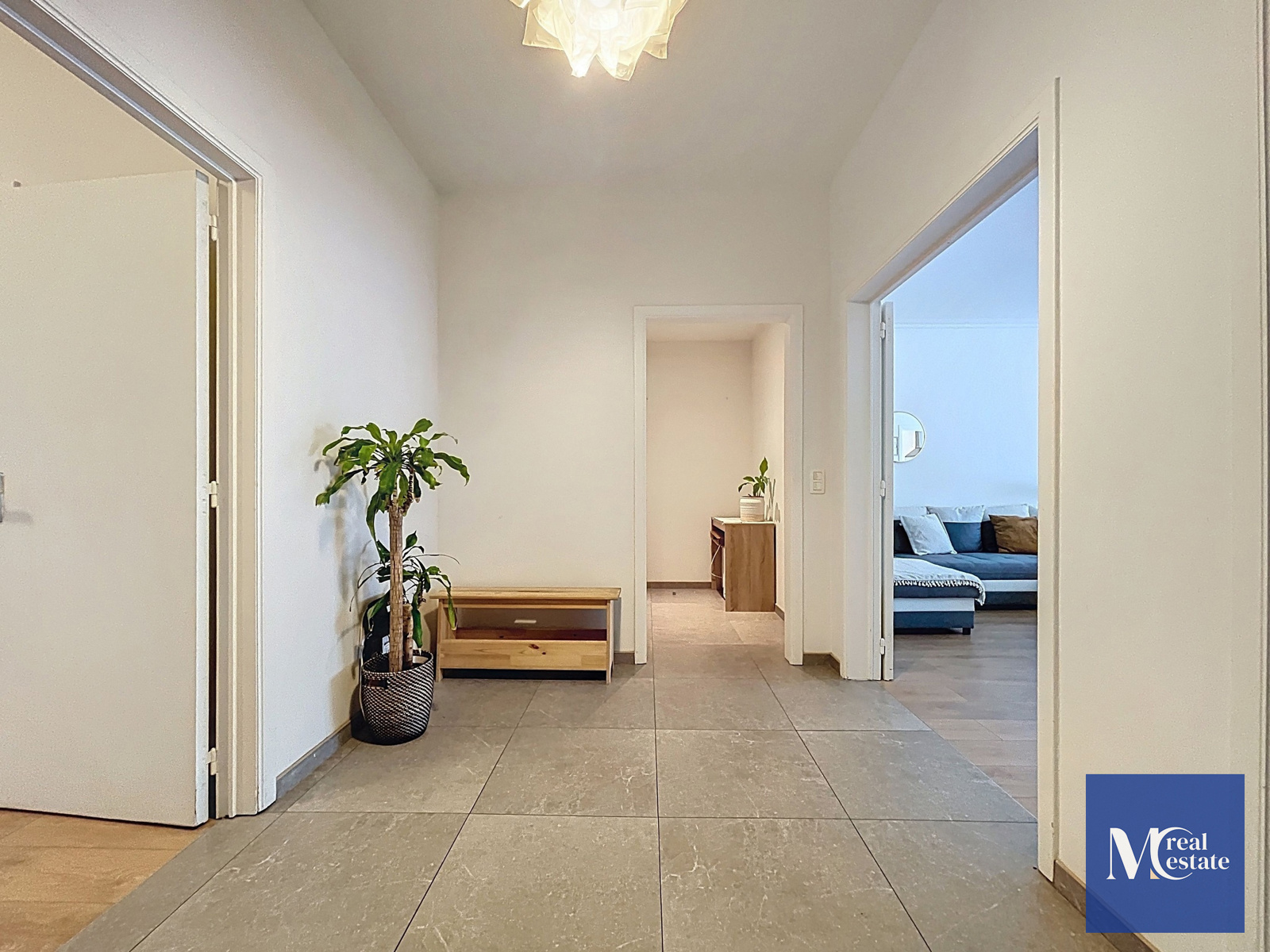 Entre le parc Josaphat et la place des Bienfaiteurs, bel appartement rez-de-chaussée rénové de +/- 89m2. Il se compose d’un vaste hall d’entrée avec placard vestiaire, séjour et salle à manger de 24m2, grande cuisine super-équipée (four, micro-ondes, taque induction, hotte, lave-vaisselle, évier, nombreux rangements) , hall avec WC séparé, hall de nuit avec placards, une salle de bains avec emplacement machine à laver, 2 chambres ( 13,50m2 - 10m2) dont une donnant accès à la terrasse arrière de 13m2 orientée Sud-Ouest. Une cave de 6m2. Ascenseur aux normes, nouvelle chaudière au gaz (2024), électricité aux normes, façade arrière isolée, volets partout. Actuellement loué mais libre au 01/02/2026. CPEB E-. Info et visite 0478 35 73 88