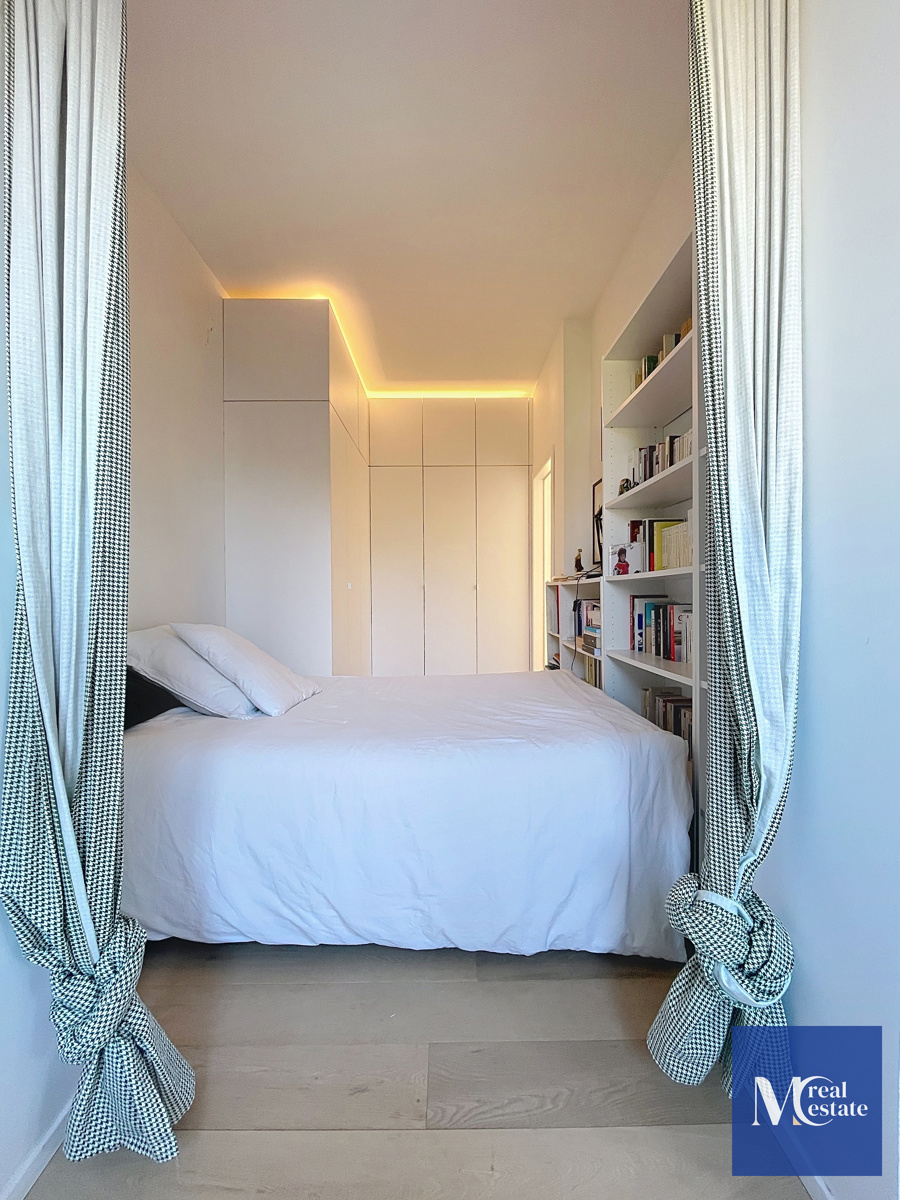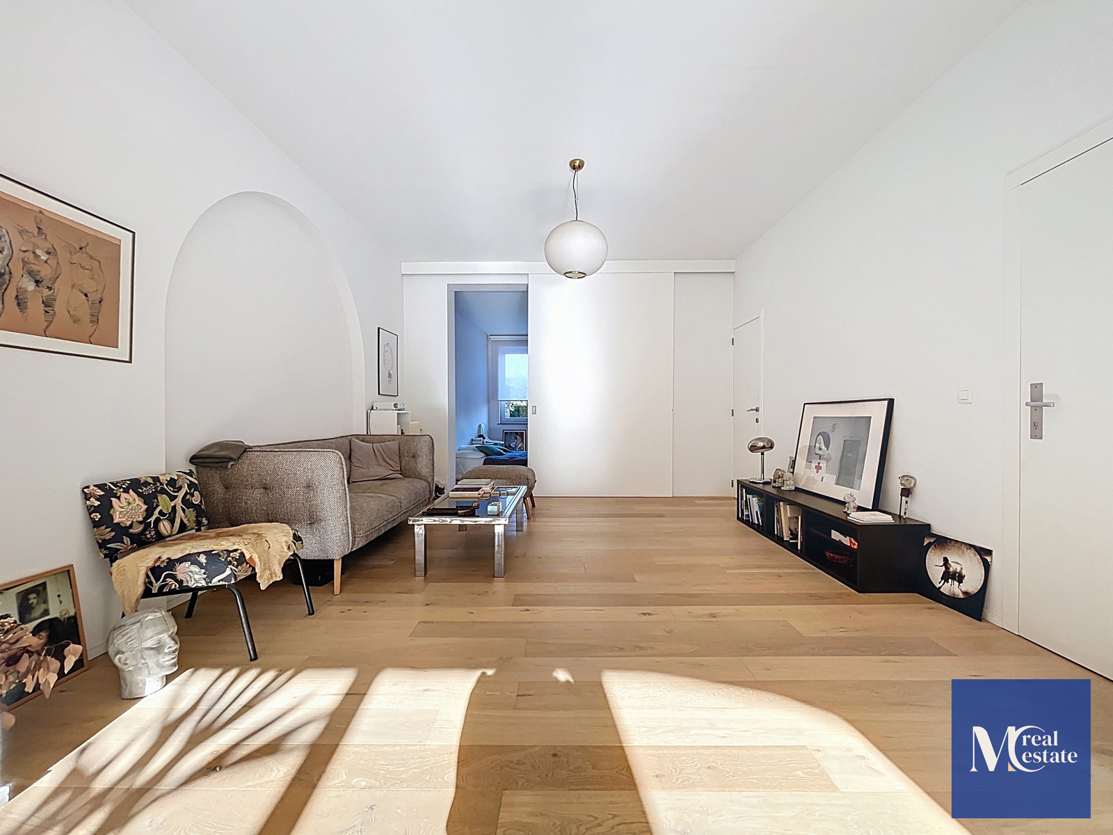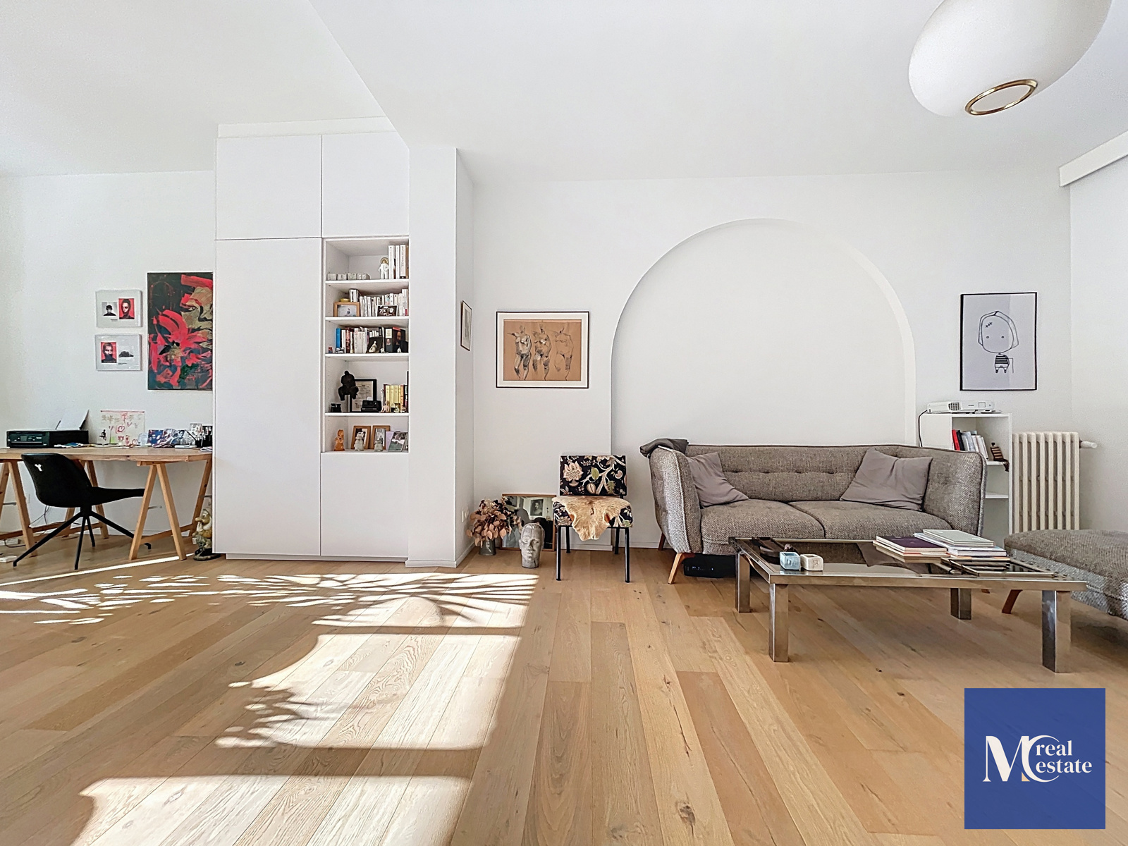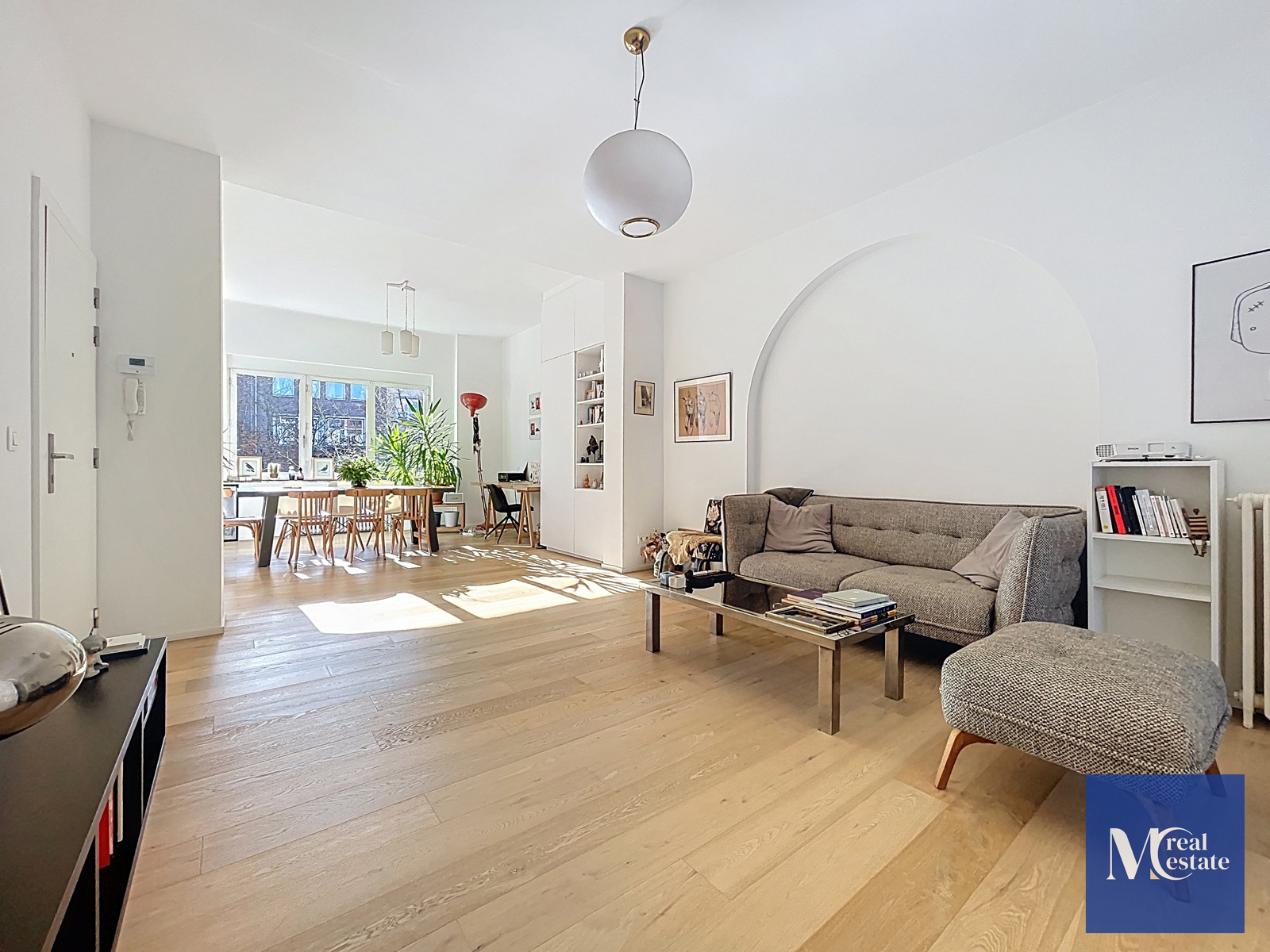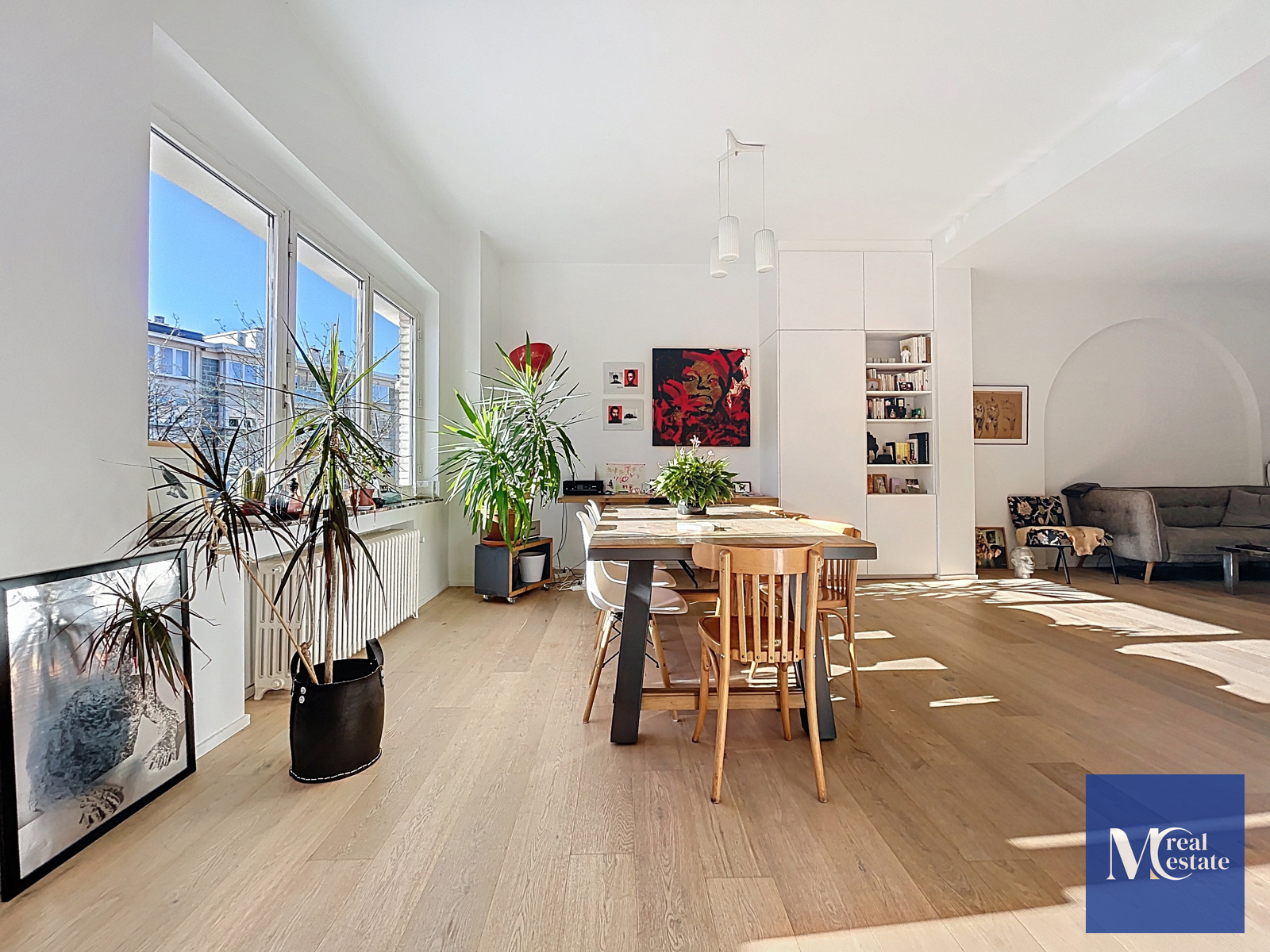 Situé dans un immeuble de style moderniste signé par l’architecte Louis Tenaerts, MC Real Estate vous propose ce superbe appartement lumineux entièrement rénové de +/- 92m2 alliant charme architectural et confort contemporain. Les volumes et la distribution ont été repensés pour convenir à différents modes de vie, que ce soit une grande chambre et un bureau et/ou dressing ou un deux chambres. (Reconnu en une chambre à l’urbanisme). Il se compose actuellement d’un séjour de 20m2, salle à manger de 18m2, cuisine super-équipée, WC séparé, une chambre de 16,50m2 avec armoire sur mesure , salle de bains, pièce de 9,50m2 utilisée comme dressing avec armoire sur mesure. Porte blindée, chaudière ind au gaz, électricité conforme. Une grande cave carrelée avec branchement machine à laver. Idéalement situé à proximité immédiate de l’Altitude 100, du parc Duden, des transports, et des commerces, cet appartement séduira les amateurs d’architecture et ceux qui recherchent un lieu de vie unique à Forest. CPEB E+. Infos et visites 0478 35 73 88